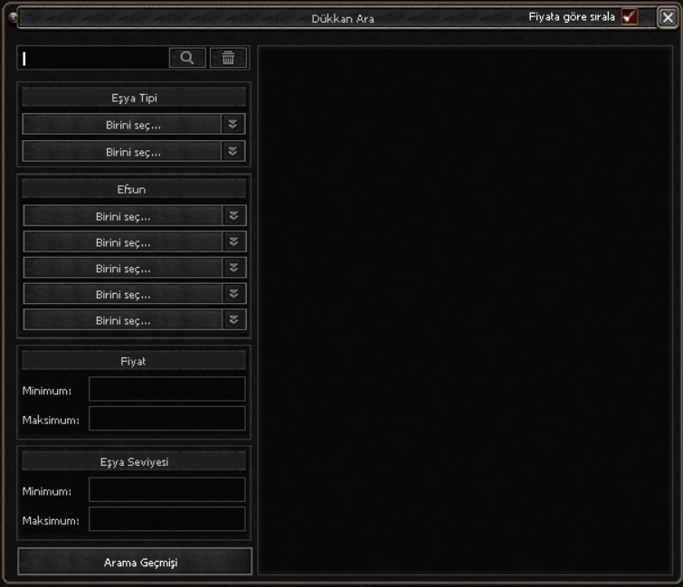 Sistem, kategori bazlı düzenlenmiştir. Bu sayede silahlar, zırhlar, kostümler, petler, efsun nesneleri gibi ürünleri tek tek kategoriler altında listeleyebilirsiniz.